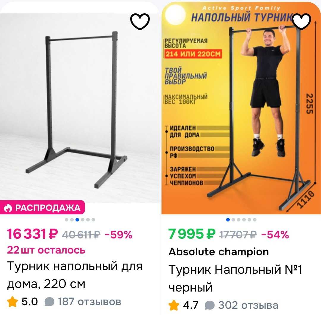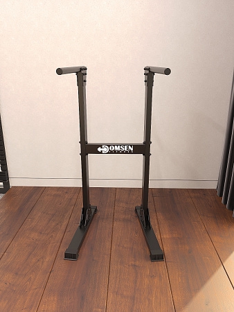 А еще лучше напольный турник типа пикрил (или стойка для штанги с турником, если гриф планируется) и кольца. В таком >>2643831 ширина брусьев может быть не подходящая. У меня, например, в плечах дискомфорт на брусьях 60 см.