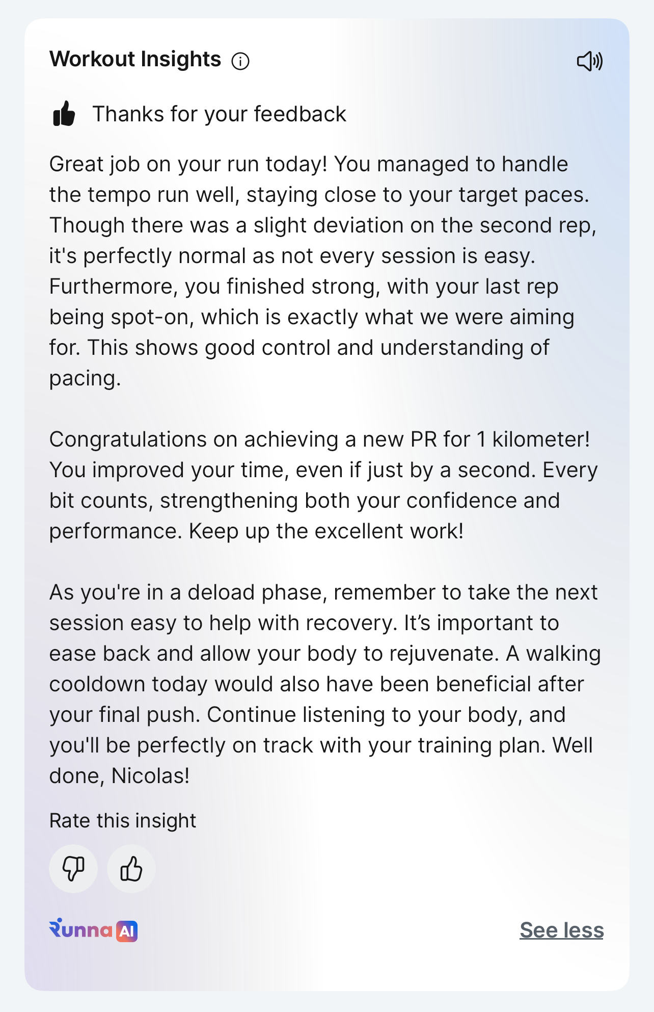 Приложил скрин с AI респонсом из Runna, если кому интересно.