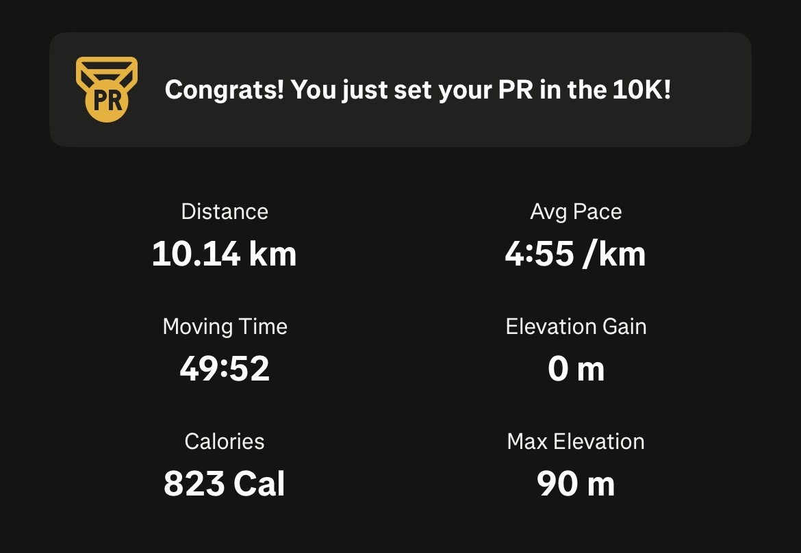Чёто мне кажется правда что за почти год бега результаты не очень, будто прогресса нет особо. 49:09 на 10К, 21:56 на 5К, словно так же и бегал изначально +-, только дистанцию из себя могу чуть больше выжать. Хотя с другой стороны я курил по пачке-полторы больше 10 лет, хз короче. Может просто не умею гордиться собой.