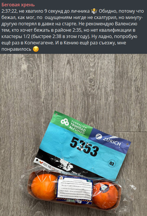 Ещё был такой Ринат Хакимов, который словил типичный кризис среднего возраста и решил в 30лвл с дивана ебануть марафон на КМС. Ну этот хоть по миру покатался, всякие Берлины, Валенсии побегал. Даже тренера брал. Но вот что не дано, так не дано. Столько лет угрохать, столько травм, слетал в лютый перетрен. И всё равно в итоге до КМС не добрался. При этом Иван, который был самым настоящим жирным двачером почти на 10 лет старше показал личник на марафоне лучше, бегая на самоподготовке по книжкам Дэниелса.