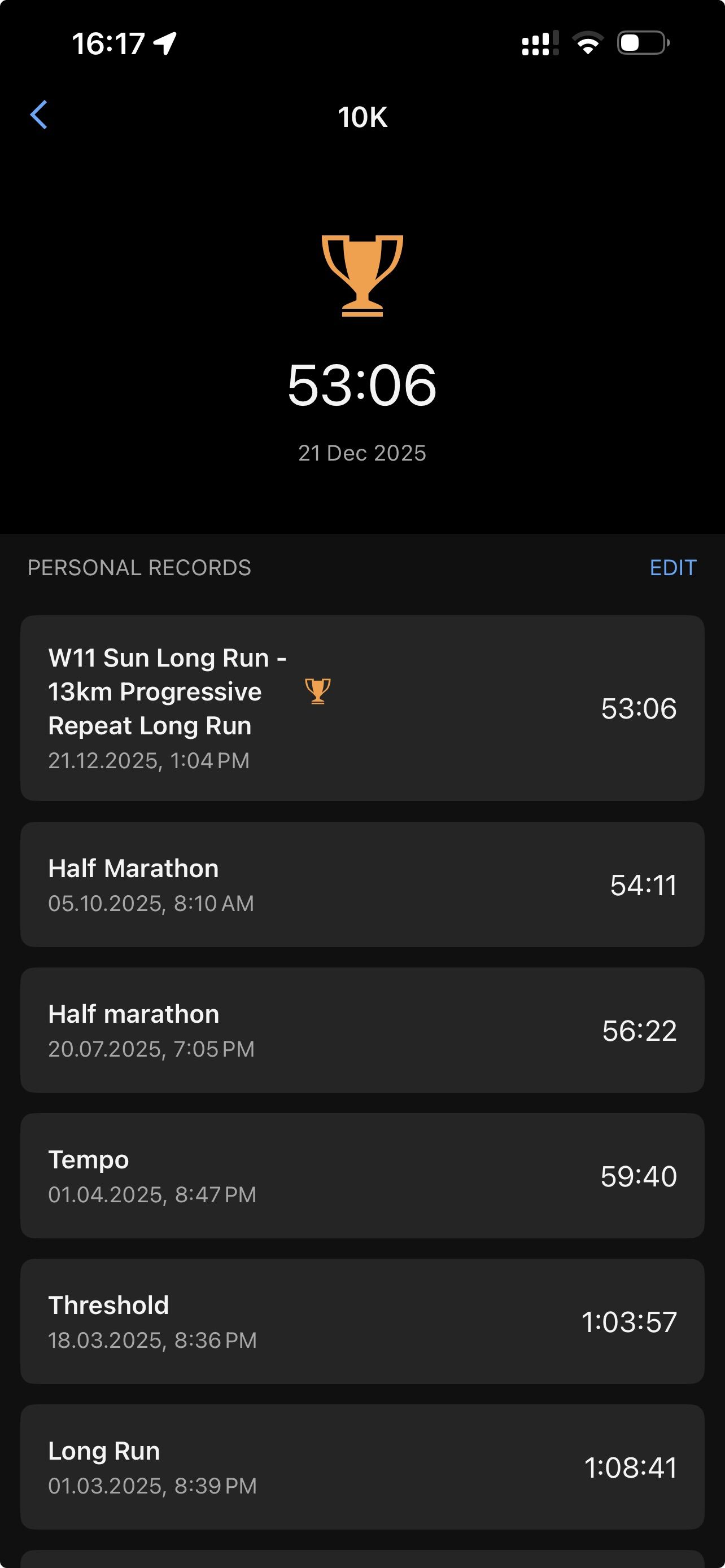 К слову, я не на свои деньги на сборы ездил, мне выделили бюджет $5000, так что съезжу ещё раз весной. Вообще конечно задача была обновить личники на всех шоссейных дистанциях в 2025 и снизить градус фанатизма, всё-таки 42 года уже. Справился с 5,10,21, а марафон так же пробежал, как 5 лет назад. Пока прёт, попробую еще раз марафон атаковать.
