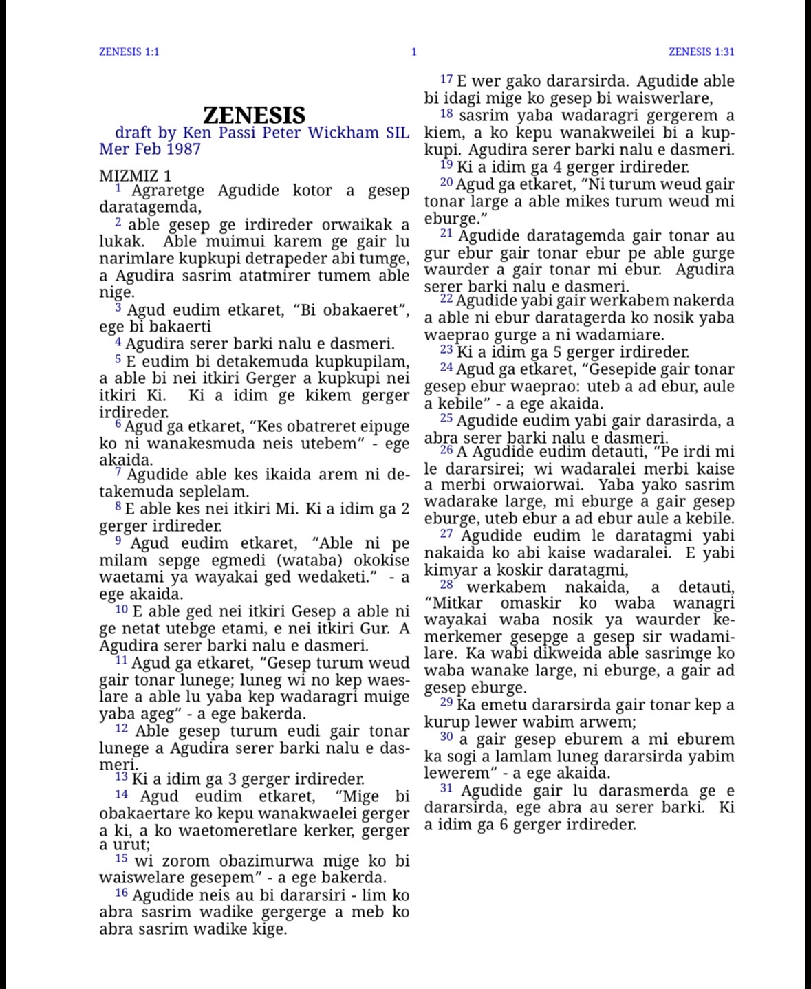 >>754047 Потому что Австралия — засушливые ебеня, в которых привыкшим к тропическому климату папуасам некомфортно. А австралийцы, со своей стороны, не смогли бы потеснить более многочисленных и технологически развитых папуасов. Хотя есть исключения. Язык мериам мер с острова Меррей — папуасский, но содержит австралийские заимствования. Нашёл грамматический очерк и отрывки из Библии на сабже, закинул в библиотеку: https://mega.nz/folder/fEM2RCyK#MrqS8nEfsCwutupERDY4fA