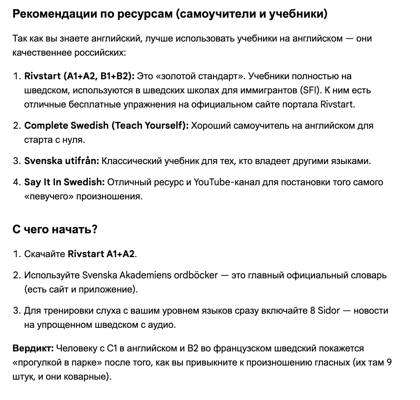 ー Практический курс шведского языка (Погодина Н. Е.) ー Duolingo, Memrise, Rosetta Stone (можно найти на 4PDA), а также различные форумы и соответсвующие темы.