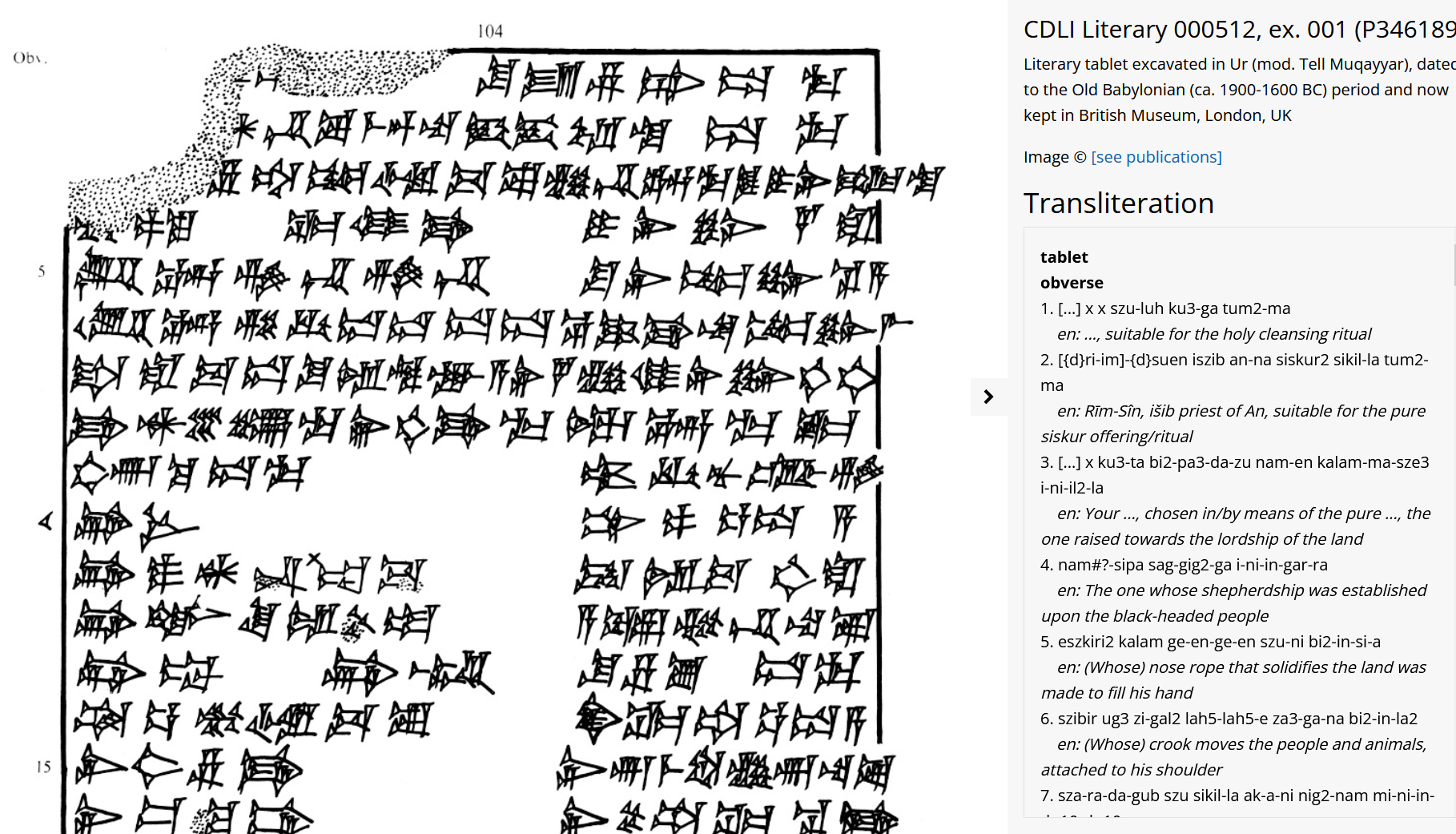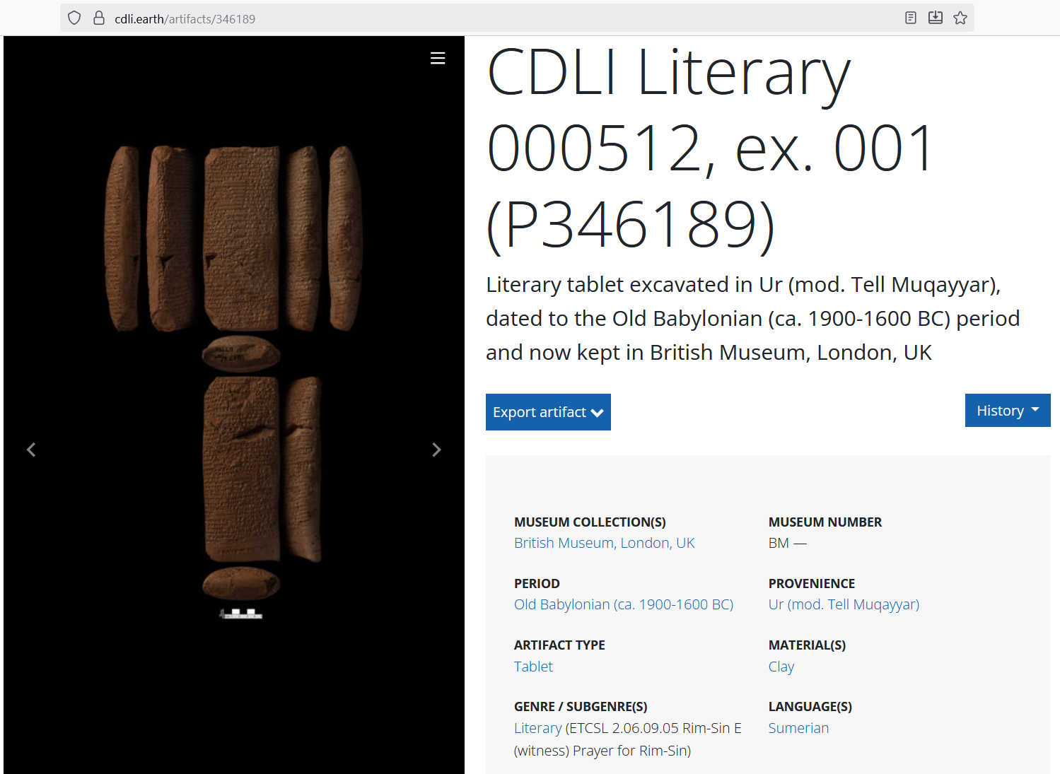 >>610419 (OP) > Если у анонов что по теме есть - комментируйте ИТТ. cdli точка earth - сайт с обширным корпусом текстов по шумeрскoму, аккадскому, хеттскому и иным клинописным языкам, детальным поиском (язык, период, тематика и пр.), возможностью просмотра как фотографии, так и автографического риуснка клинописной таблички с транслитерацией текста.