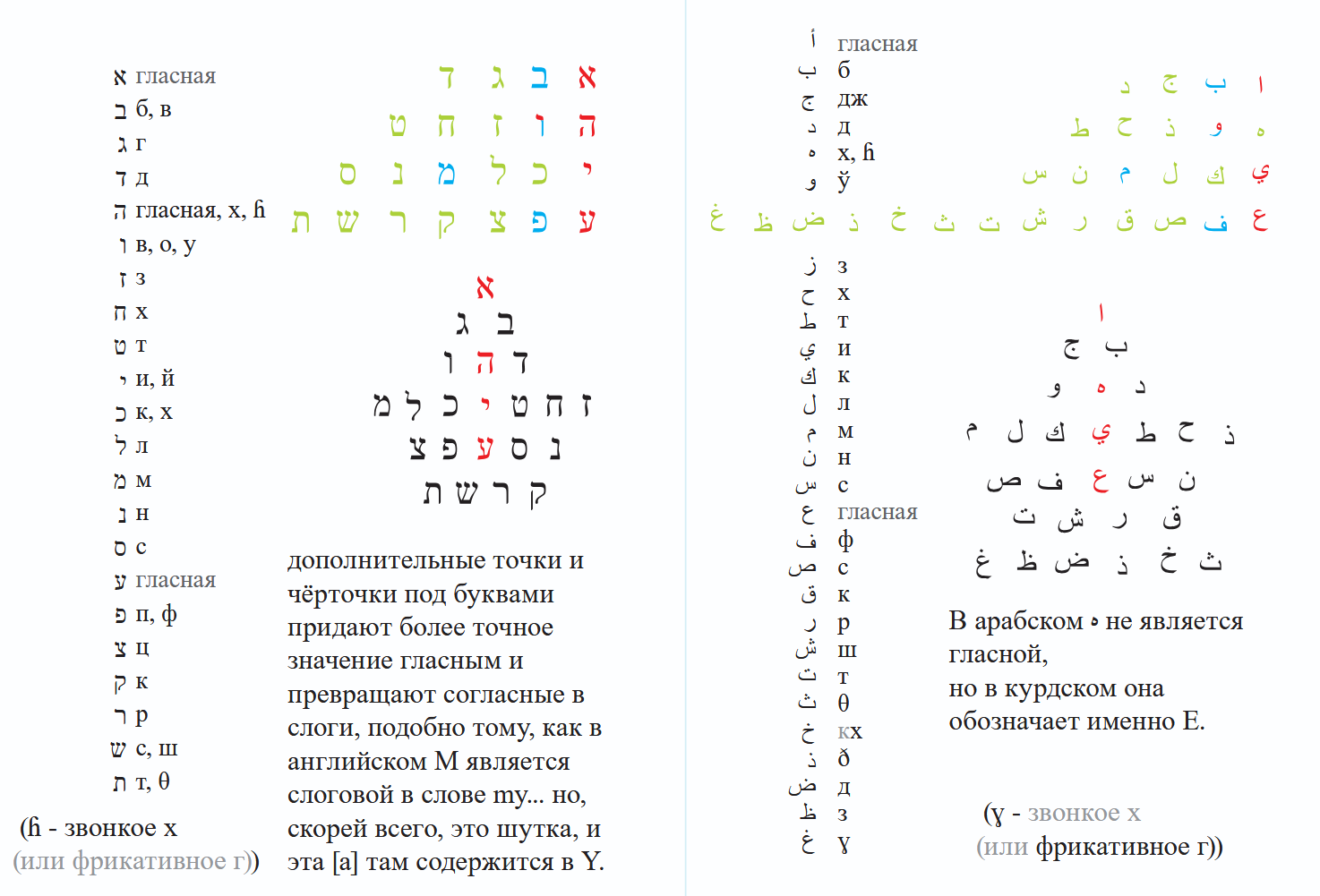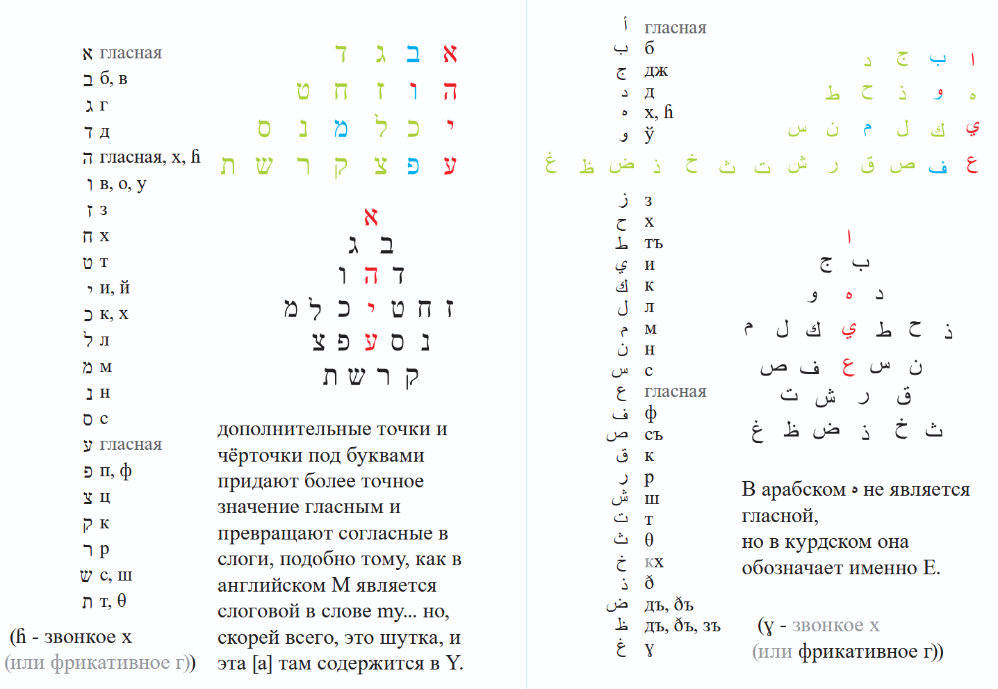 >>704075 >некоторые из них изменяются в зависимости от положения в слове Это в ивритском скорее некоторые меняются, а в арабском некоторые не изменяются.