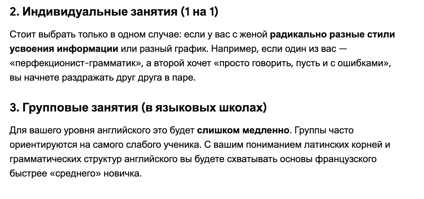 Почти платиновый вопрос, но - хотим с женой изучить французский с нуля (у обоих английский B2-C1, никогда не сдавали экзамены, но сериалы с англ. субтитрами, англ. ютуб смотрим без проблем, достаточно свободно общаемся - проучились в англоговорящей среде в университете 4 года) - стоит ли сразу взять педагога, лучше заниматься групповыми занятиями (2 ученика и 1 педагог) или лучше 1 на 1 с педагогом?
