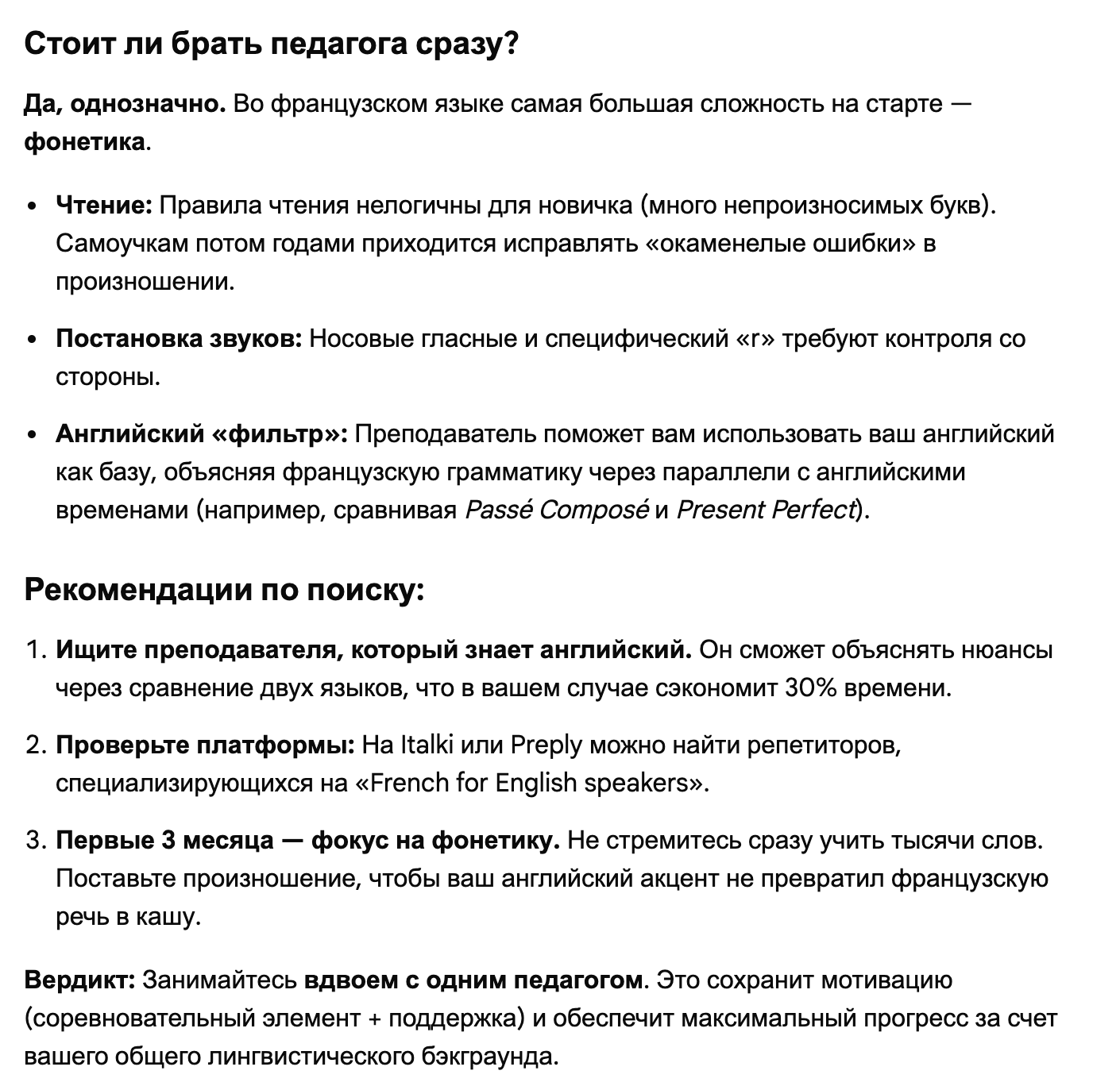 >>751994 общайся на английском с ИИ, а оно пусть тете отвечает на фр. Слушай анг-фр пимслер, не повторяй, просто слушай внимательно . Через месяц ты сам поймёшь что делать, какой контент, какая практика и и д далее нужны, так как образованный человек, и дама тоже.