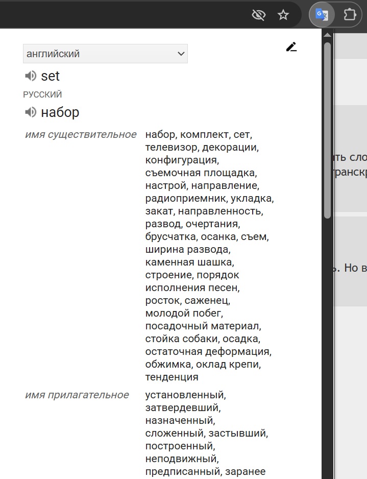 >>746545 Бля как вы таким пользуетесь? Я понимаю там слова где условно одно значение которое ни с чем не спутать. Но вот у слова set 1000 значений. Неужели во всех копаетесь ища правильное?