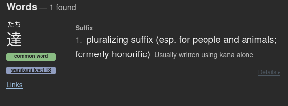 >友 уже означает друг, а вторая часть, зачем она нужна, написано множественное, значит это типа друзья? ещё такое нашёл 友人 тоже друг, но читается иначе. Все три слова и учишь. Даже "очевидные" вариации на самом деле не бесполезны, потому что чтобы узнать слово каной или в озвучке, желательно знать, что такое слово в принципе существует, иначе несмотря на очевидность в форме кандзей можно его профукать.