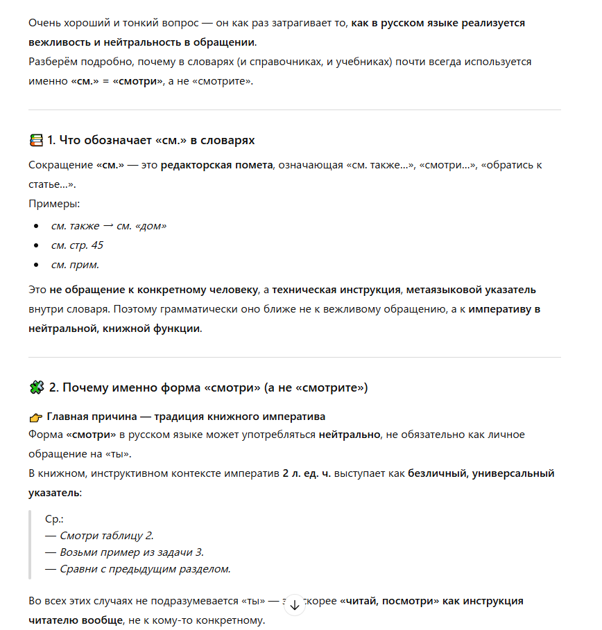 >>747884 Постоянно встречал "см." раньше в художественной литературе в сносках. Прочитывал всегда как "смотри" и никогда не воспринимал это как фамильярность.