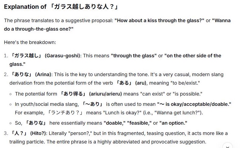 Сап, минна. Что насчёт изучения японского через нейронки? Потыкал немного в gemini, вроде норм разбирает предложения, но я жалкий н4 червь поэтому не уверен в правильности, но у вас-то найдётся пару оборотов или идиом, которыми можно вывести нейрокал на чистую воду, хочу услышать мнения местных гуру.