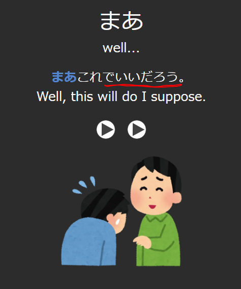 >Вообще, давно хотел это спросить, сейчас самое время, зачем учить язык по какой-то васянской игре? Мне кажется это очень удобная и продуманная игра, в отличие от дуолингво просто некст левел в плане интереса и комфорта, рекомендую попробовать если ты начинающий. Единственный минус как я понимаю что она даст всего 330 слов, 150 канзей и совсем базовые грамматики, наверное это уровень ниже N5 или как там.