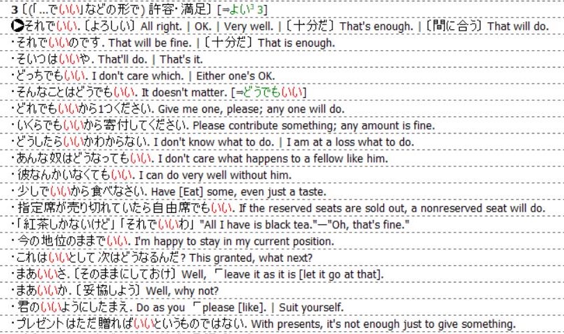 >>750475 >Кто-то может кстати пикрил грамматику объяснить? Вот эта грамматика: https://www.kanshudo.com/grammar/でいいです У тебя です нет, но это влияет только на уровень вежливости. Вот еще пикрил с кучей примеров.