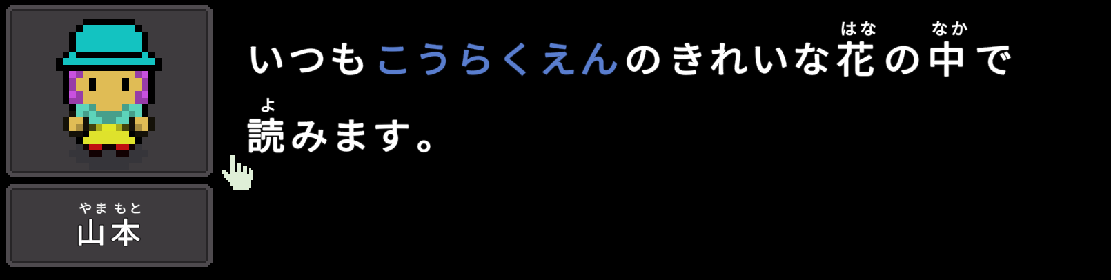 >>750106 >потому что тебя закидывают всяким говном и ты должен сначала наугад пройти задание чтобы разблокировать справку о каком-то правиле грамматики или слова. Она как раз для любого рака с 0-м знаний. Если подходить и разговаривать с персонажами, то там все рассказывают и нет никакого наугад. В среднем там примерно так: ты заходишь на локацию, далее встречаются NPC, с некоторыми ты типа просто говоришь, некоторые дают грамматику и слова и собственно выдают тебе примеры и пару упражнений. Потом в конце локации есть NPC котоырый проводит тест - спрашивает с тебя новые и старые слова и грамматики. Прошел тест - доказал что освоил материал - прошел дальше на следующую локацию итд. Еще можно зайти потренить кану и канзи порисовать.