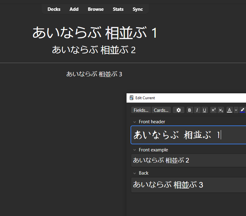 >>751014 ой, да это я новую карточку создал из рандомного слова, вот канзи добавил - ничего не поменялось. В редактировании карты видно было что с канзями что без что шрифт другой.