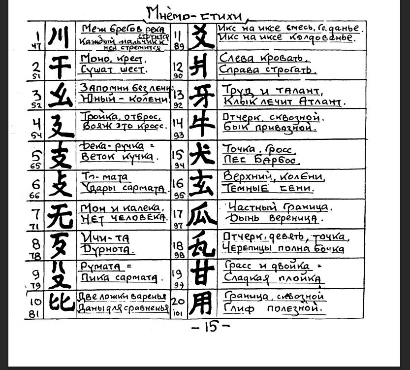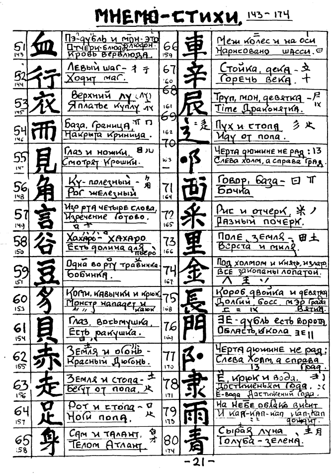 >смотрю и ваще не помогает раскладывать их на составляющие Да, есть сложные на мнемонику кадзюки. Но в треде есть анон который с этим помогает, спасибо ему,, обязательно какой-нибудь пошлятины накинет - глядишь уже и запомнил.