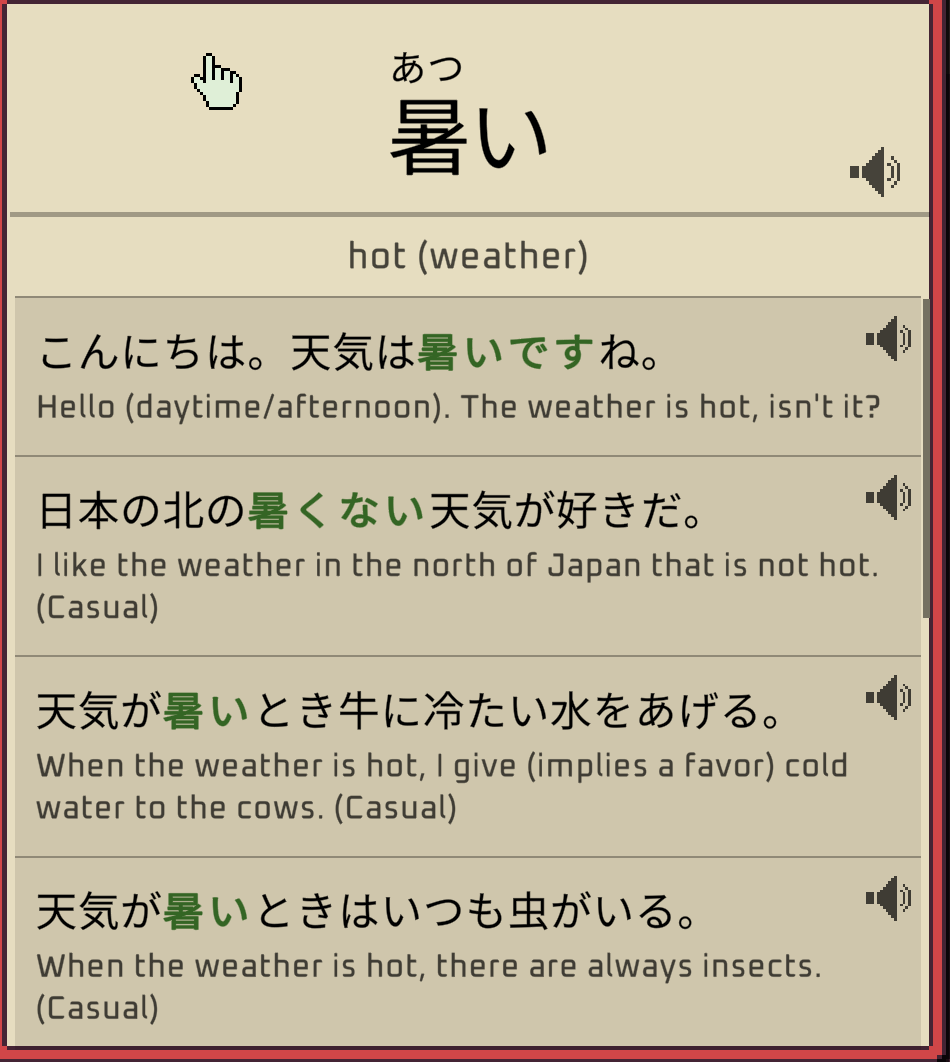 Просто можно подсказать челу, что бы в примеры вчитывался внимательно и по контексту запоминал слово. Ты все равно пока нубас то идешь со скоростью черепахи, и нехуй слушать 20к-словарный-запас-трачу-на-слово-0.3-наносекунды-челов пока что. Все равно нужно сука все прорабатывать по началу по 100 раз. И во все въехать и понимать что каждое слово и частица в предложении делает что бы дальше идти.