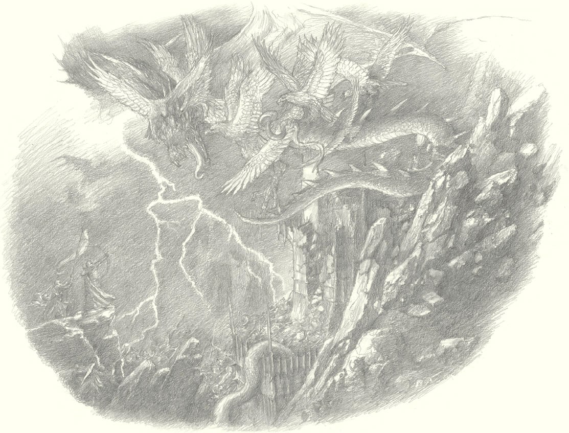 Она увидела, как кипит Кринна. Она увидела, как Уфрис горит вновь. Она увидела, как раскрываются могилы, исторгая из себя мертвецов. Она увидела трон Скарлинга, разрубленный надвое; деревянные обломки кровоточили. Она увидела нашествие червей, копошащихся на отравленных полях. Она увидела нашествие ворон, дождем сыплющихся с голых ветвей и заслоняющих луну, погружая мир во тьму.