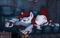 Скиллово прифотошопленная волчья голова и крылья от бабочки, плюс доспех из скайрима (в прямом смысле, там даже резьба на нагрудной хуйне один-в-один), красиво торчащая пластиковая ветка, все трое уебанов палят куда-то над твоей головой вызывая желание обернуться и никогда больше не поворачиваться обратно и все это на фоне мыльного неба, которое даже не небо, а так, текстура. И совмещены все эти слои (текстурка,холмик, женщина, дебилушка, шерстяной волчара, ветка) настолько качественно, что границ между ними не чувствуется вообще.