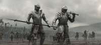 Начиная с 1:15 - главный фронт, армия старается сдержать наступление нежити. Тысячи солдат ведут огонь из магических арбалетов и "бластеров"(элитные части), маги бьют самыми мощными заклинаниями, магическая артиллерия накрывает таким количеством снарядов, что хватило бы стрирать селые города с лица земли, вокруг литерали ад, зомби и прочая мертвая мразь прет лавиной, плотной толпой на участках фронта в десятки км, шагают некроконструкты, у которых от прямых попаданий отваливаются тонны гнилой плоти, в воздухе идет бой десятков костяных драконов с сотнями наездников грифонов, росчерки фаерболов, молнии, лучи, трассирующие снаряды. Постепенно отчаяние нарастает, маги гибнут, выжившие применяют все более сильные и опасные для них самих и для своей же армии заклинания, но противника не остановить. https://www.youtube.com/watch?v=eastNniTGIg&t=77s
