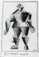 РуССкий конструктивизм. Рыцарь обезличен, фигура статична, служит только для передачи экспрессии через форму, выразительность сродни архитектурной. Доспех полностью закрывает фигуру и превращает рыцаря в автоматона. Идеологической составляющей не завезли.