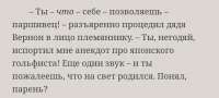 Кажется, я понял, что мне напоминает вся эта шизописанина. Это же буквально книжное маняме в стиле какого-нибудь Насруто, длинная, нудная хуйня, заполненная филлерами под завязку, с нелепыми ультрапафосными героями, которые гиберболизированно реагируют на каждый раздражитель, с сюжетными арками, замудренными настолько, что авторов заебывает их заканчивать, и в итоге они никуда не ведут, с абсолютно неадекватными диалогами, потому что ни один хоть немного реалистичный человек даже в художественном произведении не стал бы так говорить - это маняме во все поля.
