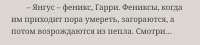 О, охуеть, что спивако-поттерморы наеборезили в ТК. Наберите воздуха в грудь, готовы? Знаете, как у тут зовётся Фоукс? Ну? Есть идеи? ЯНГУС - ну типа Ян Гус, сожженный на костре. Какие же они всё-таки васяны, пиздец просто.