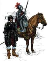 Что - залп с мушкета? Хоть раз за Тридцатилетнюю войну мушкетеры без прикрытия пикинеров отбивались от кавалерии? Знаешь ведь битву при Рокруа? Победу Конде определяют тем, что в имперской пехоте было слишком много мушкетов и мало пик, поэтому его всадники просто смели пехоту второго и третьего эшелона, а дальше там была агония испанских терций. Впрочем там на другом фланге кавалерия Изенбурга чуть было не опрокинула французскую пехоту, но тут Конде со своими всадниками отвлекся от избиения пехоты и ударил по кавалерии Изенбурга