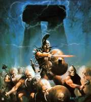 А вот Конан за авторством Норема: стильные ботфорты нового времени, бронзовая пряжа, золотые браслеты и ожерелье, экстравагантные меховые трусы, роскошная черная грива, бритое лицо, смазанное маслом мускулистое тело. А твои "варвары" походят разве что на великанов, с которыми сражается Конан.