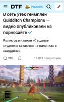 >Несколько геймплейных роликов Quidditch Champions появились на сабреддите, посвящённом игре. Их записали на трансляции одного из участников закрытого бета-тестирования, которое началось 20 мая. >В видео можно увидеть кадры матчей по квиддичу, возможности по кастомизации персонажа и режим практики. >Warner. Bros представила Harry Potter: Quidditch Champions в середине апреля 2023 года. В компании сообщили, что игра про квиддич для ПК и консолей находится в разработке уже несколько лет. https://dtf.ru/games/1834878-utechka-pervyy-geympley-quidditch-champions-igry-pro-kviddich-iz-garri-pottera