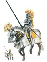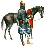 >>535320 Поверх которой надет пластинчатый (ламеллярный или чешуйчатый) доспех с наплечниками и подолом, на груди поверх доспеха зерцало, на руках наручи и кольчужные рукавицы, на ногах кольчужные чулки или поножи. Шлем с личиной и широкой бармицей.