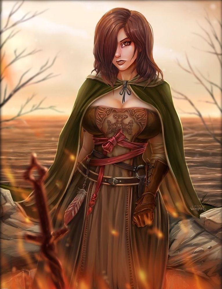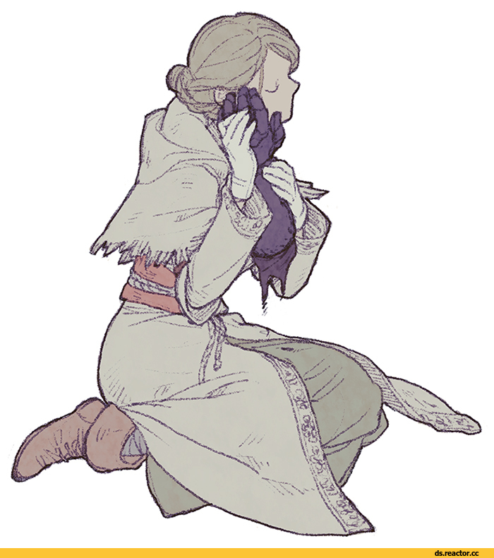 Вот приходишь ты в храм, усталый после убийства лорда. И единственная душа которая тебя дожидается - Ирина из Карима, слепая монашка, забившаяся в самое темное место храма. - Ах, Чемпион, что же ты так долго? Каждый раз одно и то же. - Хочешь. Я расскажу тебе историю? Она рассказывает. Вновь и вновь. Из своих непонятных книжек, в которых вместо привычных букв лишь непонятные знаки. Раньше она зачитывала от корки до корки каждую найденную книгу. Теперь нет – эти знания заставляют ее страдать. В такие моменты, она жалуется, что какие-то маленькие существа терзают ее плоть. Которой и так немного под этим балахоном – худое предплечье можно обхватить пальцами ладони, настолько истощена слепая. - Твое прикосновение… И перчатка падает на землю, звеня кольчужными кольцами. Иссохшие пальцы оказываются зажаты меж маленьких тёплых ладоней. Сейчас она как-никогда похожа на маленькое испуганное дитя. И эти ассоциации будят старые истертые воспоминания, о кладбище пепла, ставшем местом упокоения старого Судьи. Разгневанный мужчина, прячущий заботу, за уродливой личиной горгульи. Крики и лязг оружия. - Наше союзничество длилось не дольше, чем твоя забота о ней! Он нашел покой среди старых могил. Его старшая сестра смотрит с исцарапанной поверхности щита, и больше никогда не издаст ни звука. Как и брат – его язык отдан в дар молчаливой богине древнего храма. Горячие пальчики скользят по иссохшей ладони, обводя узоры плоских вен и линии судьбы, забитых золой. Понятная книга для святой, все поступки, все грехи как на виду. Она все видит, но никогда не осуждает. Она всегда мерзнет. Тепла в них обоих слишком мало, чтобы нагреть ту жалкую холстину, на которой сидит монашка – единственный дар, который она приняла. Холод камней больше не заставляет неметь ее ноги. Она не ходит, ей некуда идти в этом мире. Пусть, так лучше. Ей не зачем видеть осиротевшую остывшую землю под умирающим Солнцем, истекающем багрянцем на пустоши павшего королевства. - Я расскажу о святой Гертруде… Красивая история, ему нравится. И куда лучше реальной – той, в которой дочь королевы умерла от истощения в железной клетке, подвешенной под самым потолком великих архивов. Ангелы сторожили ее покой ранее, но теперь стали под стать окружающему миру – прах и пепел внутри гулких полых доспехов. И бледные распухшие языки, что так сильно марают подсумок. Светлые пряди, давно немытые, скрыты под капюшоном. Очистить пряди от грязи, вымыть вшей, – вот и все на что сгодилась вода, освященная давно ушедшей королевой, исчезнувшей вдовой снедаемого короля. Остался лишь эстус. Тонкие грязные пальцы вновь скользят по иссохшим страницам древнего фолианта. Скрипят сочленения доспехов, и бурая охра – иссохшая кровь и желчь немертвых, - пылью слетает на каменные плиты. Сегодня у него особый дар – не книга, а охапка алых стеблей, увенчанных белоснежными бутонами. Цветы, пробившиеся из пепла, взросшие меж стальных лезвий, в месте где окончательно решилась судьба целого мира. - Ах, Чемпион, коснись меня. Он наклоняется к ней, протягивая свой скорбный букет. Если бы горло могло выталкивать звуки ссохшихся связок, он бы сказал, обязательно. Ответил на вопрос - что бы он без нее делал? - Замерз насмерть. Пламени нет. Углей больше нет. Пальцы загребают холодную золу, давно погасшего костра. Потому что ты все проебал, выполня