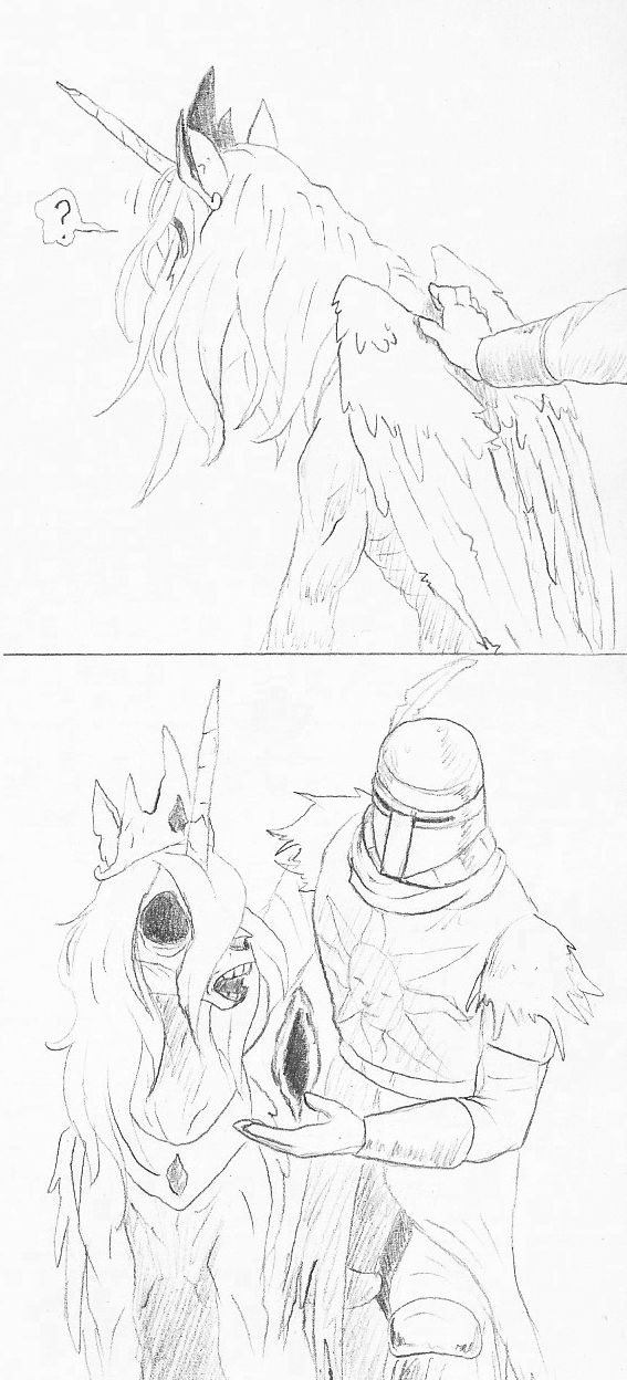 >А если она не считала себя способной что-то исправить и поэтому препоручила всё другим? Так вообще не ясно, а что у неё пошло не так, кроме её экспериментов по разведению чудесных существ, лишённых порчи горнила? Вот это выведение совершенства её сверхцель, а на ступень ниже, на уровне мироустройства в чём косяк? Просто получается Марика тупо психанула, что вот от порчи Горнила не избавиться и надо себя и свои живые неудачи выпилить. Но буквально все остальные в мире несут в себе следы Горнила, так как раз концовка Пламени Хаоса подошла бы. о у Марики выходить: "Я выпиливаюсь, а вы там дальше ебитесь как хотитесь". Нет, ну может это очень по-японски, полностью в культурном контексте и гайдзинам не понять. Но если так, как же, блять, бессмысленно и беспощадно это оказалось.