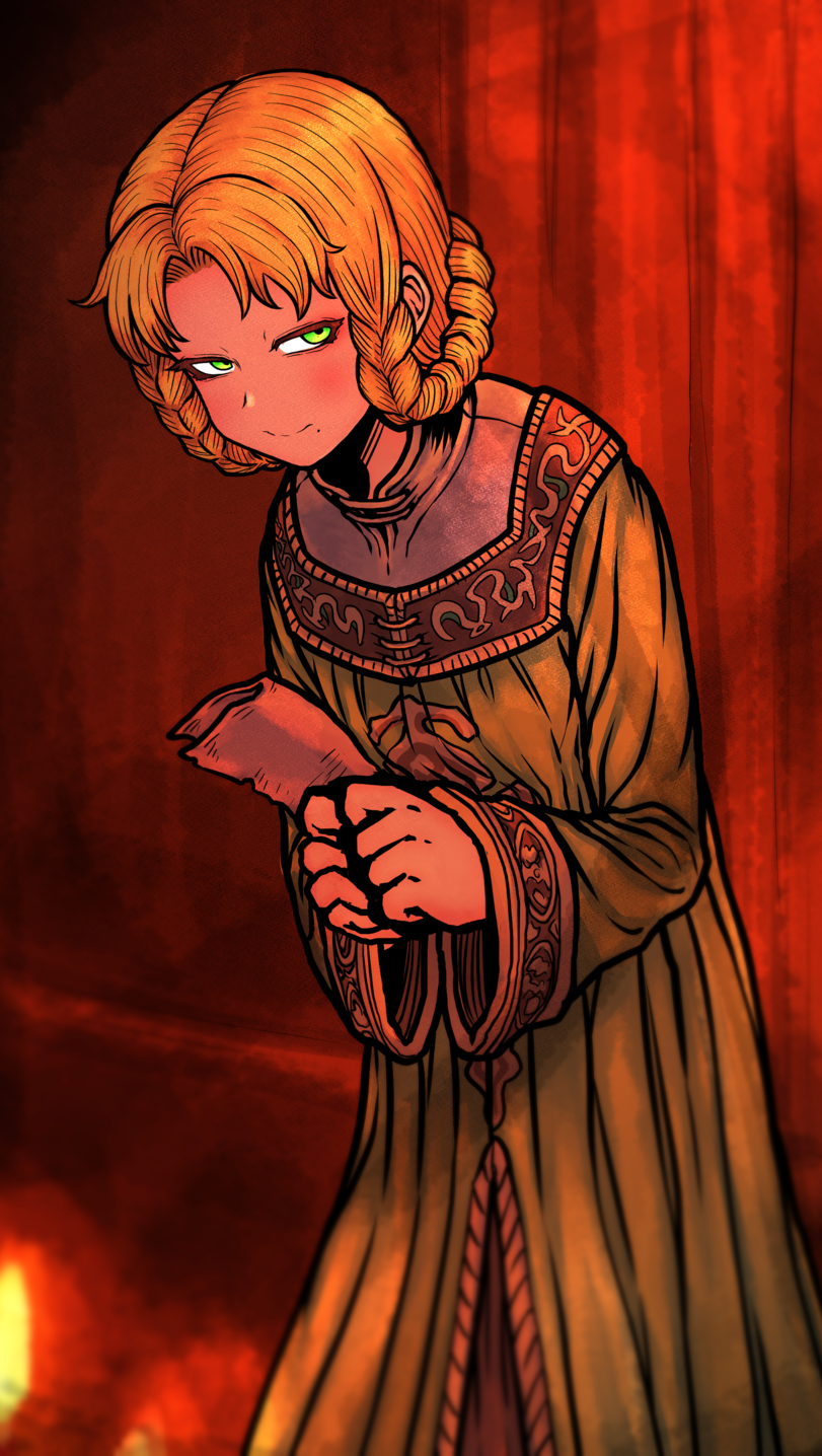 Но вообще реально странноватый момент. Либо мы её мотивацию читаем неправильно, и никакого королевского рояля между потомками в её планы не входило (тогда логично, что опасную бузотёрку она решила пустить в расход), либо Мелина что-то реально пиздецовое совершила/собиралась совершить, либо Мелина тупо изначально была рождена стать запалом Древа Эрд (мб это её врождённое проклятие, как у Малении Гниль и у близнецов горнильские рога).