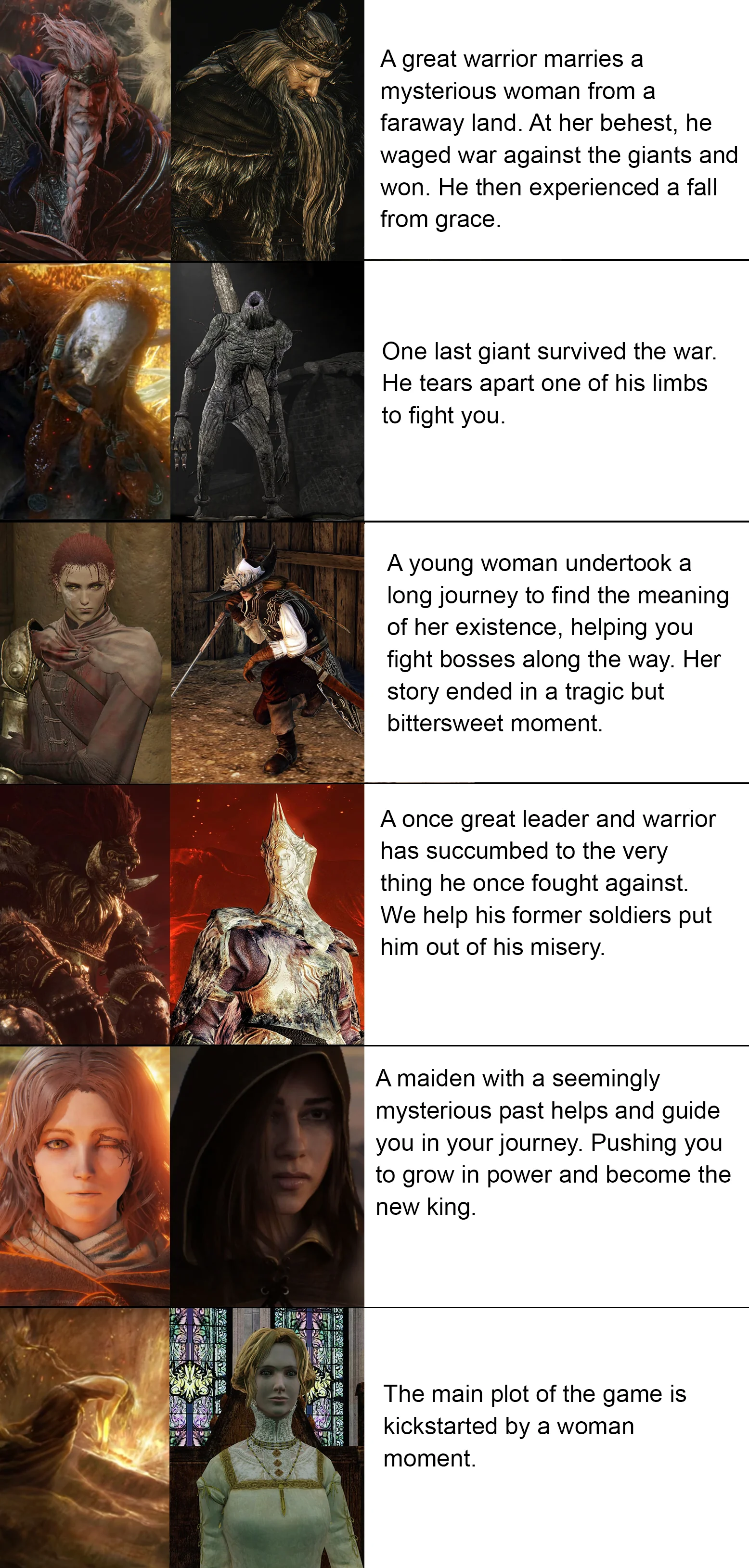 Бля, пиздец, чел, вся игра - это буквально летопись злодеяний Марики и её подсосов. Практически всё, что в их мире пошло не так, пошло не так из-за королевы и её порядка: несколько геноцидов, завоевательные и гражданские войны, превращение мира в помойку - всё это их вина.