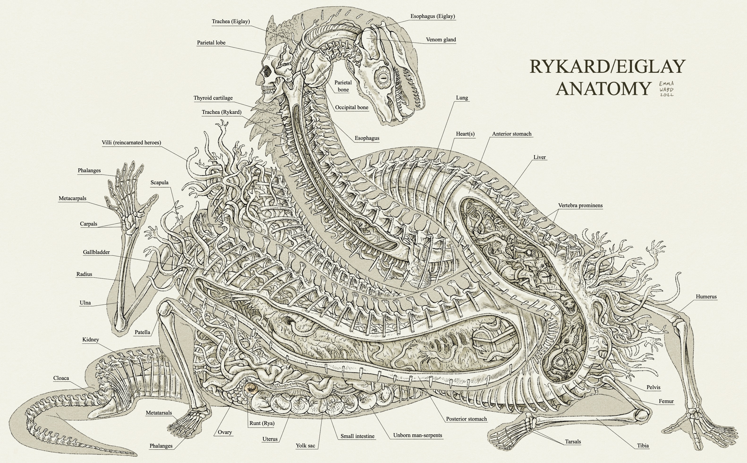 >>157275 Ну, Йорошку, можно приткнуть не к Присцилле, а напрямую к Гвиндолин. Если трактовать части Йорошки не как драконьи, а как змеиные. Опять таки Художница.....у нее тоже чешуя была.