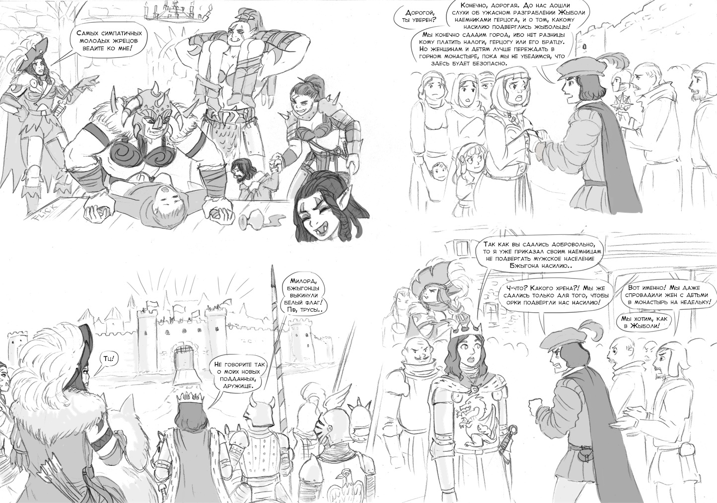 В этом мире у орков из-за проклятья больше не рождаются самцы в принципе. Орки могут размножаться, только спариваясь с другими расами. Рождаемость у зеленых на дне, и весь мир легко дышит, что теперь орки не могут не собираться на приличную орду, способную уничтожить цивилизации, а при всей своей воинственности вынуждены сосуществовать. Гоблинов цепануло, хоть и слабее, у них самцов просто мало.