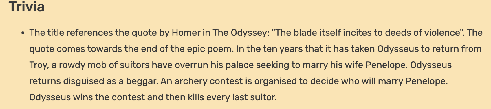 >>494675 Блуди найн - это обычное погоняло какого-нибудь мясника. А вот Девять Смертей звучит как что-то мифическое, легендарное. Сразу становится интересно, чьи это Девять смертей вынесены в название, за какой подвиг его так нарекли.