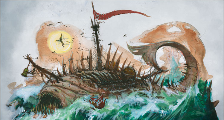 А что у нас с флотом? Кроме мертвяков-пиратов и русалок-мавок что-то есть? Например, скармливать заколдованные трупы морскому чудовищу, чтобы то страдало животом и от несварения медленно само превращалось в нежить. А потом его раздутое тело использовать в качестве плавсредств.