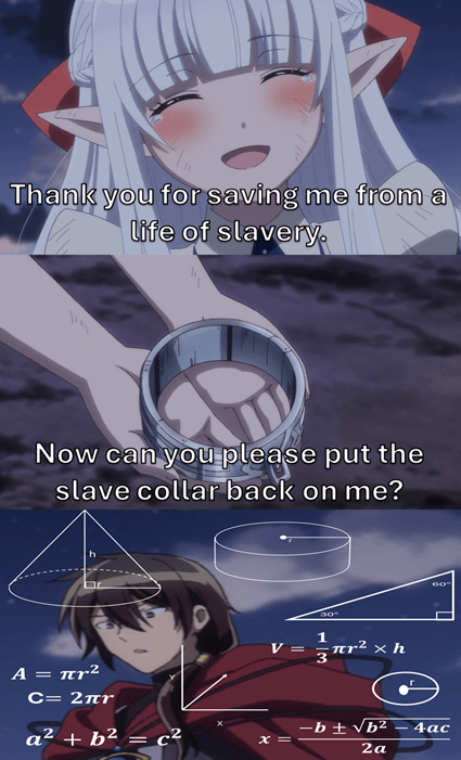 >>561050 >Ну знаешь. Когда ты жил спокойной жизнью, а тут нужно на полу спать, труханы школьнице стирать и есть с миски на полу, не говоря уже о порке кнутом, тут можно и ахуеть.