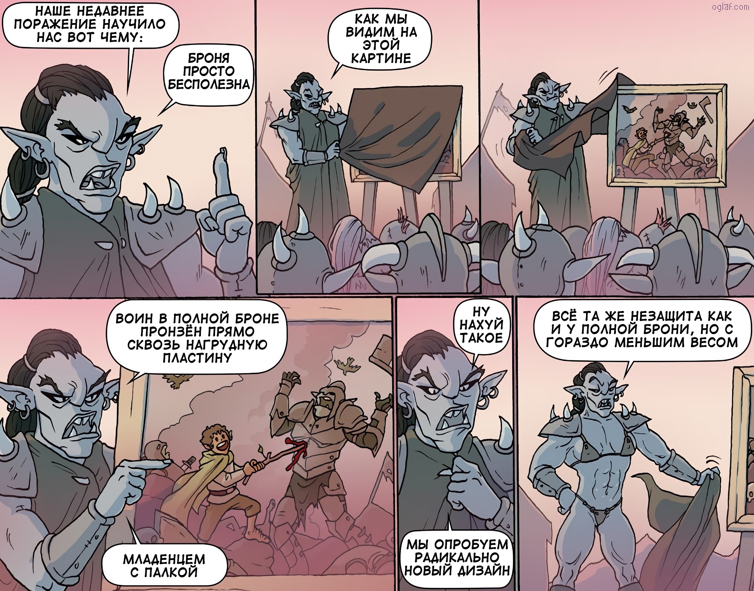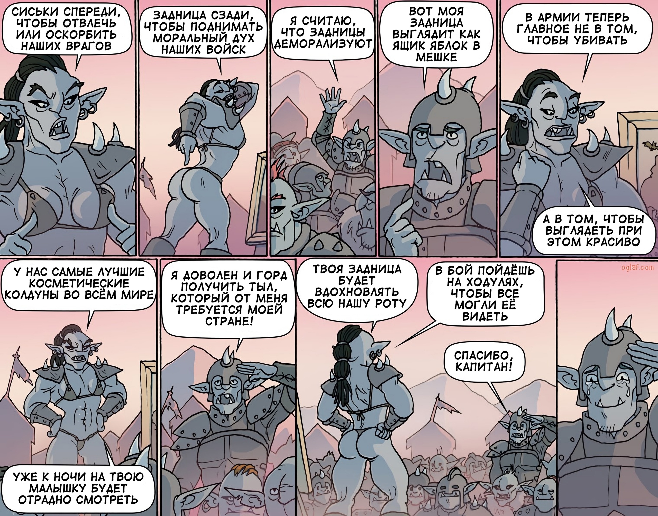>Вообще, Мосса наверное единственны автор, кто смог нарисовать женщин огров не как кумерскую фантазию о гигантессах, и не как терминальных уродок... Мосса просто рисует кого-то. Каким бы ни был образ, он кажется живым - не слишком уродливым, не слишком красивым. Просто обычным.