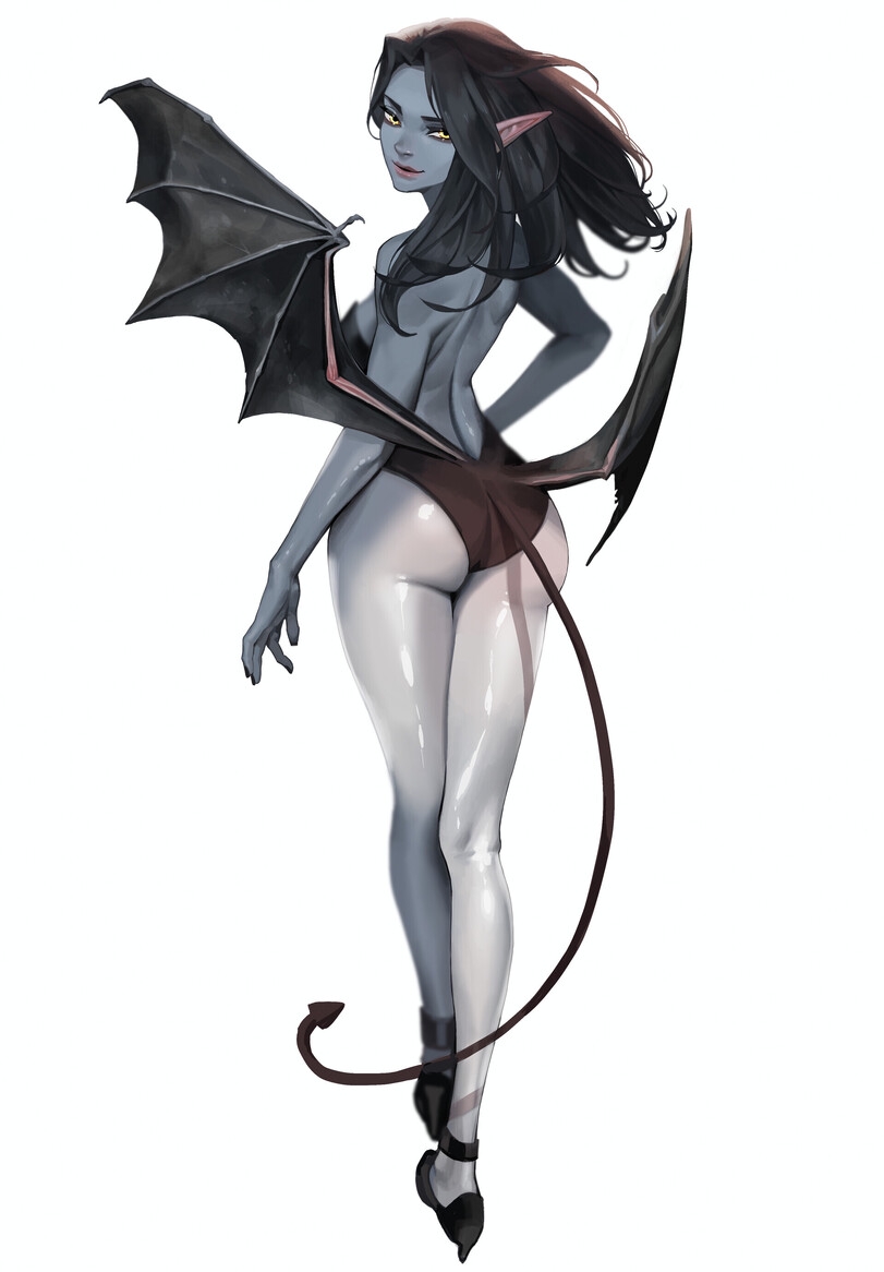 А на 3-й и 4-й суккубы. Ииии мы сразу натыкаемся на проблему того, что у суккубш, по сути, просто нет базовой внешки. Первая мало чем отличается от девушки-тифлинга, а у второй уже целый набор звериных черт. Могла быть и с нечеловеческой головой - такое тоже видел. Но вот что точно объединяет суккубш и ярко контрастирует с тифлингшами, так это сверхъестественные силы. Они по меньшей мере просто маги, если не откровенно потусторонние существа, которым чхать на законы физики.