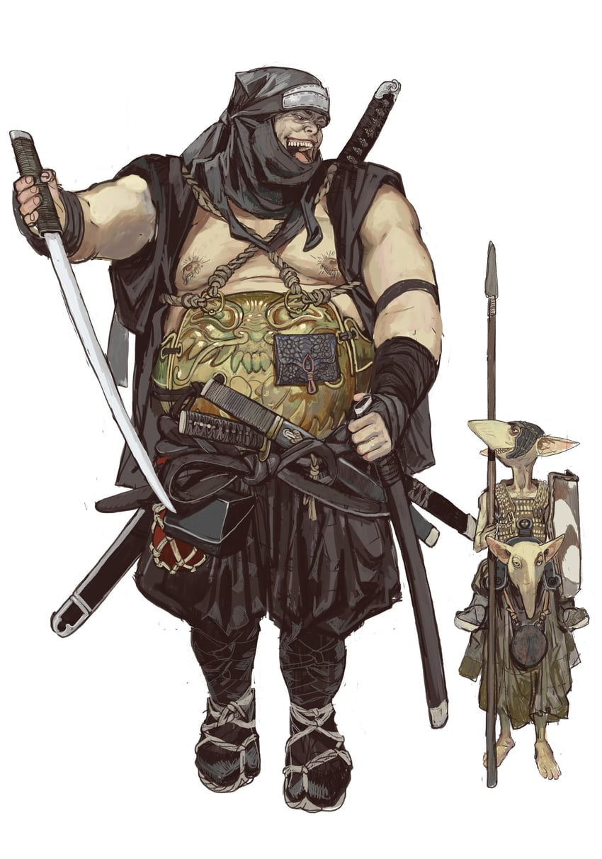 >А так, конечно же, огр шиноби от того же автора. C занимательным обращением с питомцами. Гноблар-асигару - 10/10.