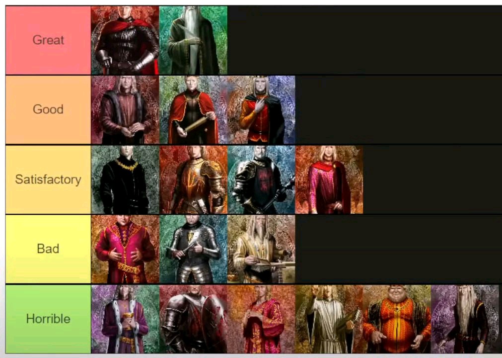 >>586781 Нет, подожди-ка, выше дан тир-лист ПРАВИТЕЛЕЙ. "Ебанько конченое" и "задрот-аутист" - это личные качества Бейлона и Эйриса I, а не их качества, как правителей. А в качестве правителей Бейлон - один из самых любимых простыми людьми королей, бомбят от него только лорды и аметисты вроде Тириона. И при Эйрисе I все задачи в государстве тоже решались оперативно и качественно. >За обоих правили десницы. И они правили хорошо. Назначение годного десницы - это ключевой признак качественного короля, это важнейшее действие умелого короля. Так что повторяю вопрос: пошто Бейлона и Эйриса I обидели на картинощке? >>586795 >Конечно бы случился. Он бы не случился, если бы зеленые не ставили личные амбиции выше интересов государства. Если бы черные не ставили - тоже не случился бы, да. >>586826 >завещал трон сыну Рейнира бы обиделась, Деймон все так же хотел бы власти. С чего ты взял, что это предотвратило бы войну? Самый верный вариант достичь мирного перехода власти к наследнику для Визериса - это назначить наследником Деймона (возможно женив его на Рейнире, да), а никаких собственных сыновей вообще не рожать, лол. Но ты же понимаешь, что это абсурд ебаный, что Рейнира как раз и была назначена наследницей, чтобы не допустить на трон Деймона, и что ни один король/лорд не хочет отдавать наследие брату (тем более ебанутому), а хочет отдавать наследие собственным детям? >прецедента Ты носишься с этим прецедентом, как с писаной торбой, но по факту мы не наблюдаем в Вестеросе прецедентного права, как чего-то общепризнанного. Эйгон Завоеватель или Роберт Баратеон на какие прецеденты ориентировались, когда напяливали короны? >мятежные лорды Мятежные лорды у тебя в штанах на Зеленом совете, который по беспределу захватил власть, совершил государственный переворот. А северяне, кому однажды присягнули, тому и служат. СЕВЕР ПОМНИТ!