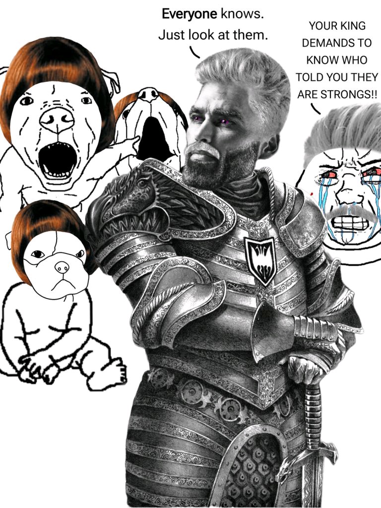 >>586727 >-15 грошей этому черному Да, гроши оставь себе. И отправляйся к Ларису Косолапому в долбильню! >Ващет я над схваткой Ну я за черных, но вообще так-то я просто рофлю. Понятное дело, что никакого кодифицированного законодательства в Вестеросе нету, Мартэна такие вещи вообще не интересуют - у него там из писаных Вестеросских законов за все книжки упомянуты ровно два (лол) закона Джейхериса, которые еще при этом и не соблюдаются. Вестерос находится в вечной ситуации "загадки Вариса" про септона, богача и короля, так что обосновать там можно что угодно и кого угодно на троне. Чем вестероссцы постоянно и занимаются. >Если б Рейнира обладала личными качествами Алисанны "Доброй королевы", а король Визерис - качествами Джехейриса "Мудрого" Пофикшу тебя: если бы ВСЕ Таргариены (или хотя бы все драконьи всадники) обладали качествами Джейхериса и Алисанны - вот тогда бы Танца не случилось. А так гражданская война между драконьими всадниками была лишь неизбежным делом времени. Ясно же, что раз на драконах летают дети, подростки, раз среди Таргариенов частенько рождаются поехавшие - рано или поздно кто-то начнет гражданочку. Ну и да - а что конкретно король Визерис-то должен был делать? Завещать трон сыну Эйгону? Так Рейнира все равно бы тогда могла взбунтоваться (если предположить, что она такая шлюха, какой ты её описываешь), как и Деймон. Арестовать Рейниру или арестовать остальных своих детей? Убить их? У Визериса же выбора толком не было. Понятно, что количество драконов и всадников надо умножать, чтобы власть Таргов была сильна, но также понятно, что чем больше драконов и всадников - тем больше риски гражданочки. Это неразрешимая дихотомия, не? >книжный Эйгон - плохой король Книжный да, а вот сериальный, по крайней мере, честно всех предупредил, что будет плохим королем и пытался от Железного Трона сбежать. >>586738 Ну охуеть теперь. А Бейлор и Эйрис I чем виноваты?