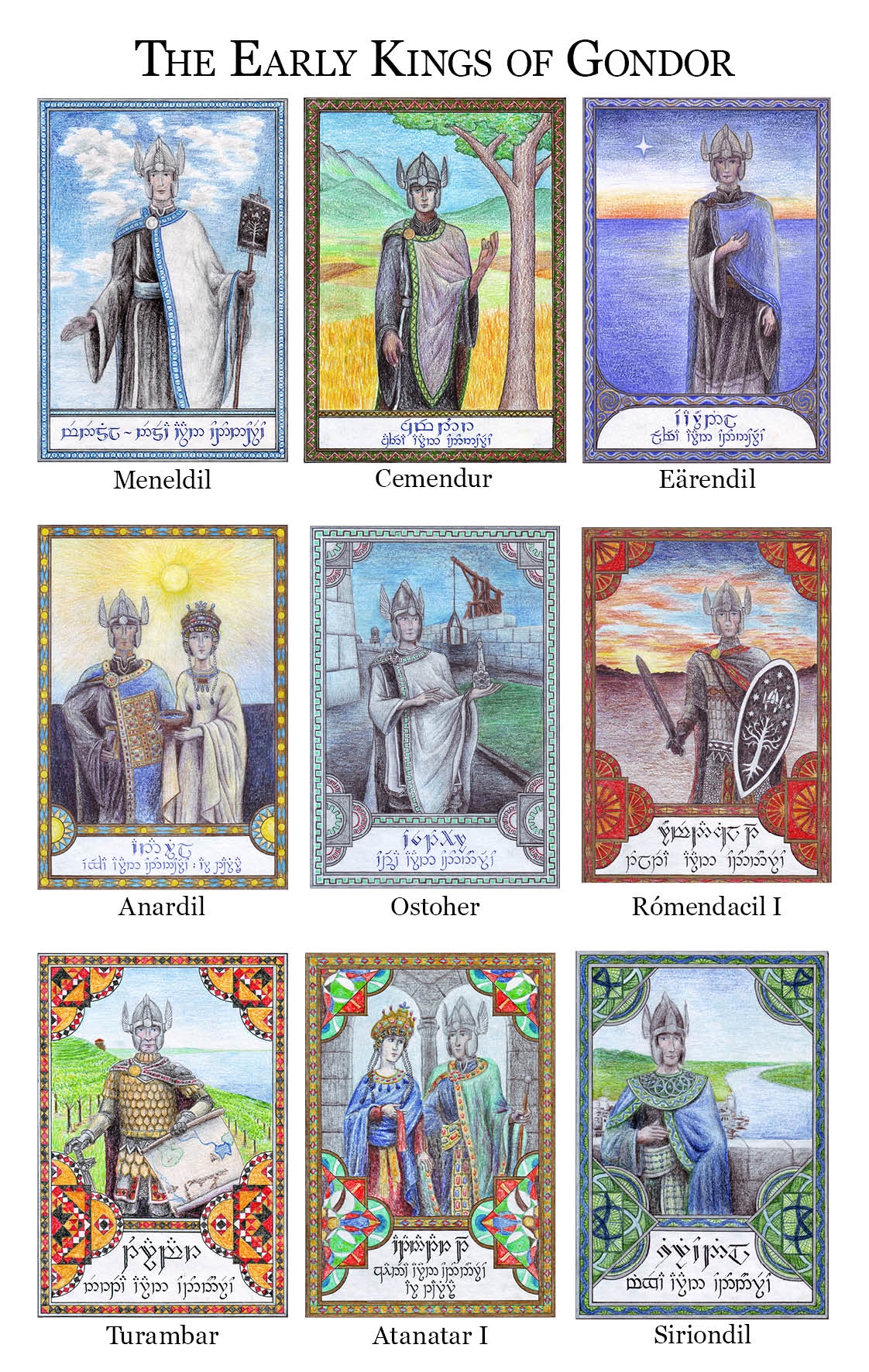 "У нуменорцев были топоры, копья и луки, и любимейшим их развлечением было стрелять из лука, стоя на земле или с коня на скаку. Позже, во времена войн в Средиземье, враги больше всего боялись нуменорских луков. «Морской народ, — говорили они, — пускает впереди себя великую тучу, и из нее дождем падают змеи или черные градины со стальными жалами». В ту пору огромные когорты королевских лучников использовали полые стальные луки и стрелы с черным оперением, длиной в руку."