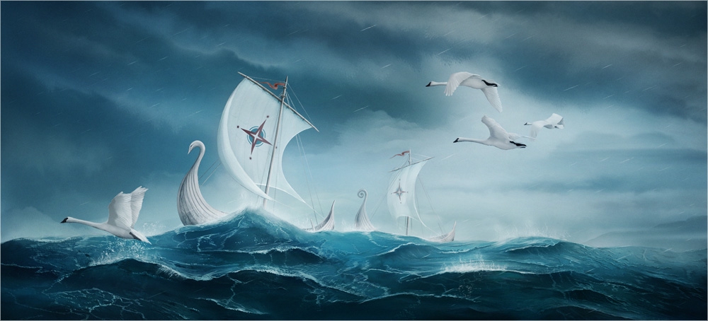 Когда же все было свершено, и наследник Исилдура принял власть над людьми, и владычество над Западом перешло к нему – тогда стало ясно, что кончилась мощь Трех Колец, и мир для Перворожденных стал седым и дряхлым. В то время последние нолдоры отплыли из Гаваней и навсегда покинули Средиземье. Последними же прибыли к Морю хранители Трех Колец, и владыка Элронд взошел на корабль, приготовленный Кирданом. На исходе осени покинули они Митлонд и плыли, покуда не сомкнулись за ними моря Замкнутого Мира, и ветра круглого небосвода больше были им не страшны – вознесясь в высоту над туманами, достигли они Древнего Запада, и конец пришел эльдарам в слове и в песне.