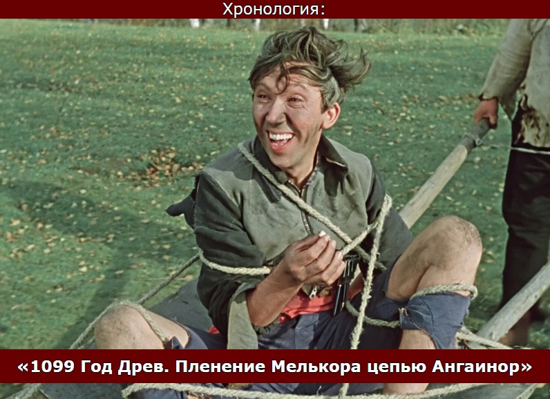 — Да хули, я сейчас расскажу, блядь — Пламя Удуна разгорится, потом будем тут, блядь… искажать всё. — У кого разгорится, у тебя что ли? — Ну а тебя что, не разгорится что ли? — С какого хуя у меня должно разгореться Пламя Удуна? От твоих историй что ли у меня должно Пламя Удуна разгореться? — Вдвоём сидим тут, блядь. — Ну давай, рассказывай, давай. — Ну… Древа выпилил, блядь, ну, два. — Угу. — С одной дурой. — Угу. — Ну, а потом она меня душила. — Бля, охуительная история просто. У меня просто Пламя Удуна так разгорелось, что, блядь, сейчас горы рушить буду. Всё что ли, просто душила и всё? — Ну быстро так, десять минут всего душила-то. А у неё потом сразу, блядь, паутина чёрт… чёрн… чёрная. Много паутины напрялося, она… ну когда самоцветы не ела просто… — Бляяя ну и истории у тебя! — Но я орать стал, блядь. Глаза закатил. Ну, завизжал, так, знаешь… Не знаю, чё нашло на меня. Визжал так, блядь, выл. — Охуительная история! — А потом это... визжал я, выл, и скалы это... раскололись, ну. А там старые кореша мои... балроги, ну... с прошлой войны прятались. Как давай кнутами дуру эту хлестать! А она это, ну, испугалась, газом чёрным перданула и свалила куда-то. Повезло, короче, ну. — Охуенно. — Ну ты лось, блядь, тебе такие истории… тоже такое, видимо, что-то было… Да ладно, ты меня всё время будешь смеяться… — Да не буду я смеяться, давай, рассказывай, как ты строил… Ангбанд. — Ангбанд, Ангбанд. Ну я Утумно потом вспоминаю, как там пещера, типа Агбанда такая… Не помню ничего… — Ну, Утумно. — Там я жил, блядь. Долго жил, кореша-балроги со мной, а с бабами напряг совсем... — А ты голубой? — Не-не, братишка, ты не подумай... мы не пидоры, блядь. Там это, ну... жарко очень было... и канализации не было совсем. — Так что же вы там, засрали всё? — Ну типа... ну все свои, привыкли уже... срали и ссали на самых нижних ярусах... там вообще жара как в бане, оно и высыхало всё моментом, только воняло сначала очень сильно, но мы привыкли, все свои типа. — Охуительная история! — Ну вот видишь! А потом всё равно ебаться охота стала, терпежу прямо нет... но ты не подумай, мы не голубые, мы получше придумали. Там южнее Утумно в лесу у моря эти появились... — Квэнди? — Да-да-да, эти самые, ну... Вот мы с балрогами их ловили, кто сильно далеко к северу заходил... ну и ты понял, братишка, да. И баб, и мужиков, и детишек — в пизду, в рот, в жопу, много малафьи налилося... — Бля, да они ж маленькие, а ты здоровый как мамонт, порвешь их всех! Это, блядь, не ебля, нахуй, это садизм какой-то! Фу, блядь! Фу, нахуй! — А они и лопалися, да... ну, рвалися и умирали. И тут я придумал сшивать их как было и это, ну... Пламенем Удуна оживлять, ну и потеха была, братишка! — Охуительная история... и что, ожили? — Прикинь, братишка, да! Только страшненькие какие-то стали и маленькие, ебать неохота совсем. Мы с балрогами придумали ими в солдатики играть — а они послушные такие... ну мы их, солдатиков, целую кучу понаделали и разводить стали, ну как этот мудак Оромэ собак своих разводит, ну. — Ебануться… — А чо ебануться-то? Знаешь как охуенно в солдатики играть? Первая колонна марширует, вторая колонна марширует... — Предел настал моих… моего внимания по отношению к тебе, всё. — Ну чё ты такой сердитый айнур-то, ну будьте людьми вы, й… ребята, я всегда вам говорю. Чего вы сразу начинаете? — Нет, я нихуя не начинаю, я от тебя вообще ничего не хочу, блядь, хочу, чтобы ты з