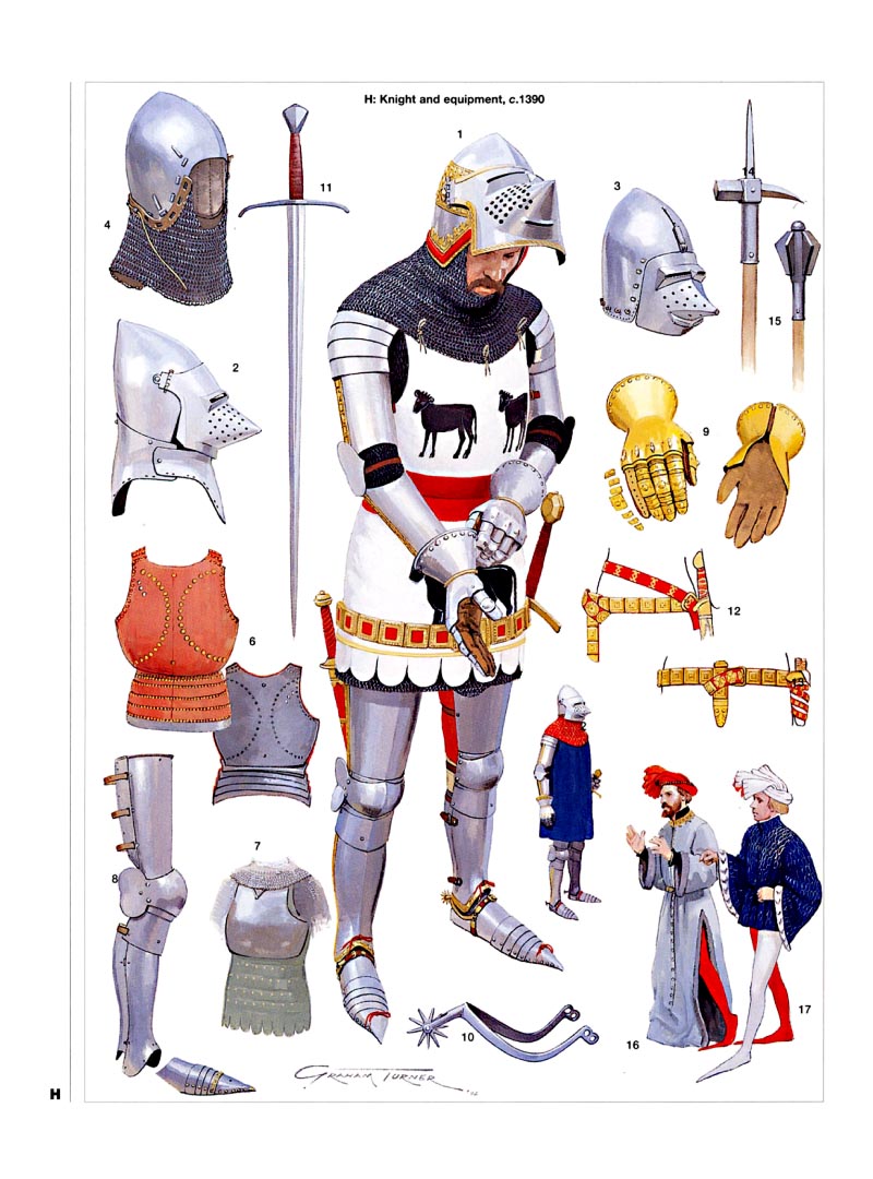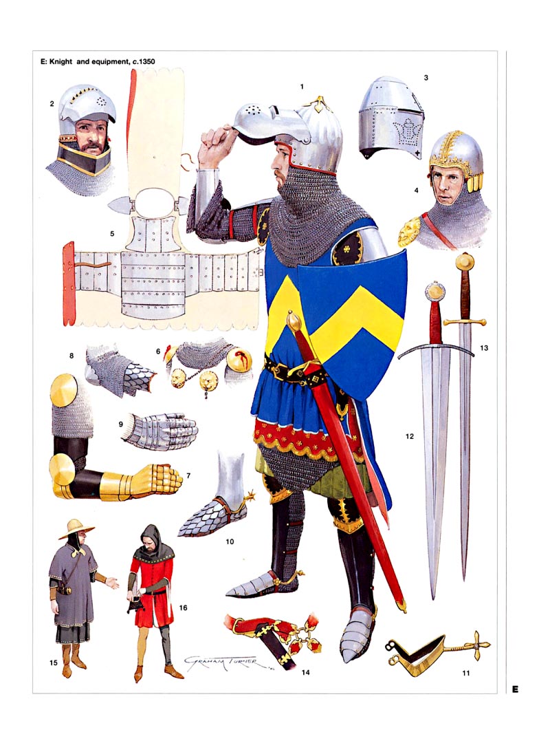 >>591420 Как известно, английский доспех 13-17 веков был впереди планеты всей по своему общему развитию. У английских рыцарей уже в 1280-х годах были железные латные нагрудники. Латная защита рук и ног у них раньше всех появилась, с 1320х годов. Пикрил английский рыцарь конца 14 - начала 15 века.