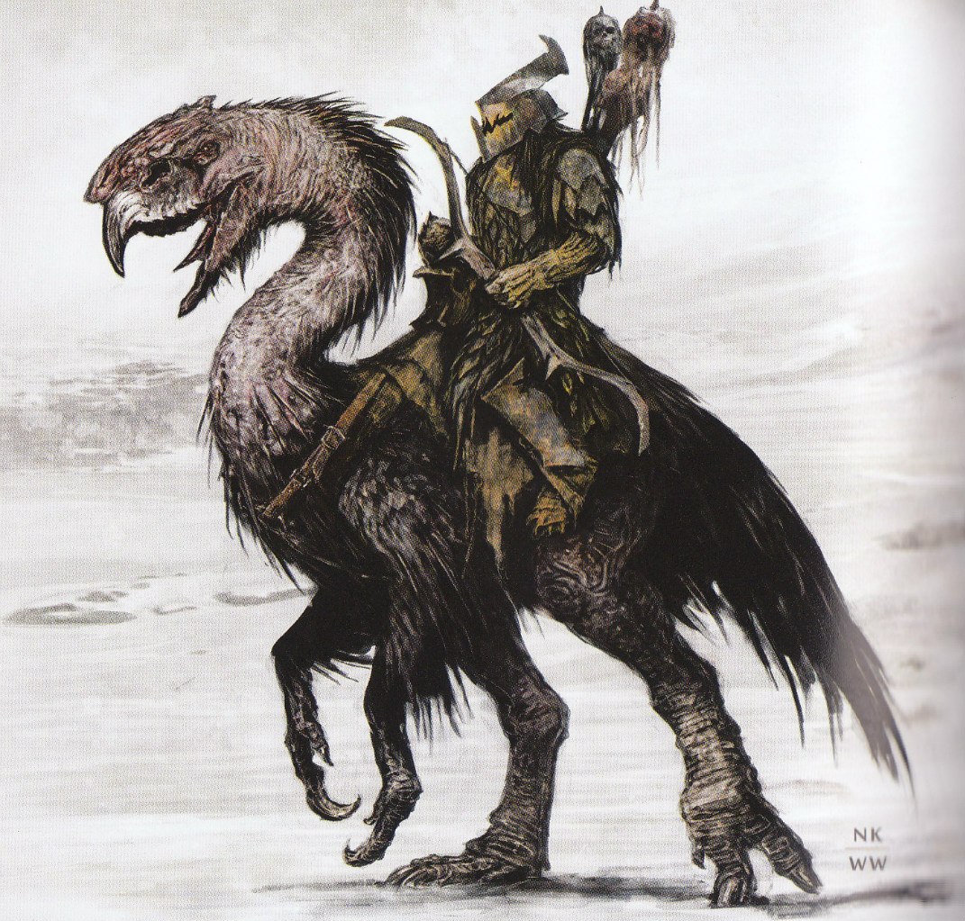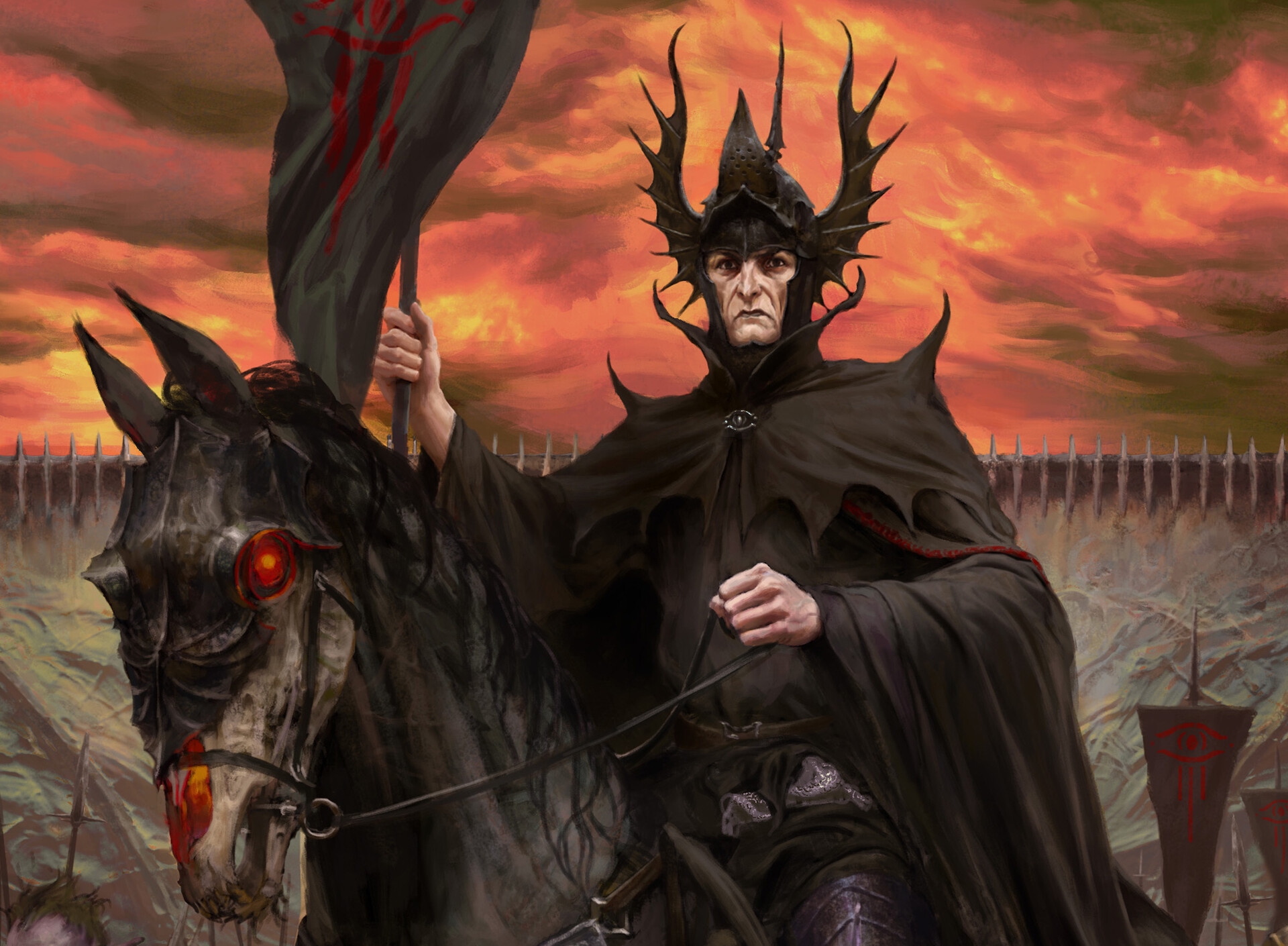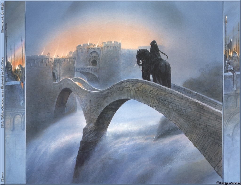 >>591969 "Во главе их скакала высокая зловещая фигура на чёрном коне, если только то был конь, ибо он был огромен и безобразен, с ужасной мордой-маской, более похожей на череп, чем на живую голову, и во впадинах его глаз и ноздрей пылал огонь. Всадник был весь одет в чёрное, и чёрным был его высокий шлем, однако это был не призрак Кольца, а живой человек."